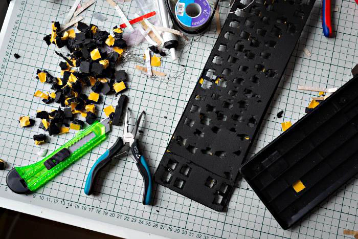 Det gick dock rätt snabbt utför för detta tangentbord. Jag upptäckte att det är lätt att beställa specialtillverkade kretskort från Kina och hittade en mall för just denna modell; jag hittade nya keycaps; jag upptäckte det här med after market-fjädrar och slutligen även dämpningsmaterial. Idag är det några originaldelar kvar, typ hölje och brytare.