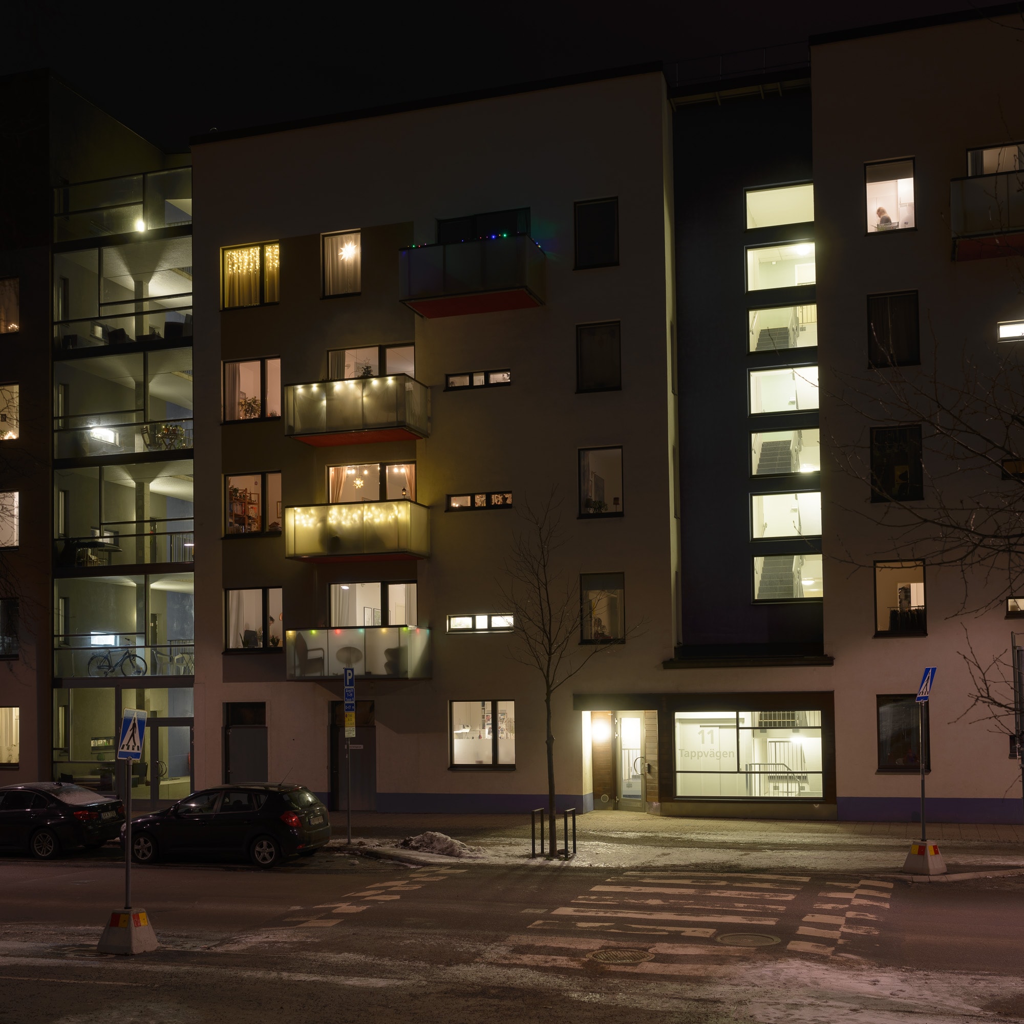 Det här är en bild på huset jag för närvarande bor i. Som bild betraktat inget att hetsa upp sig över, men den känns representativ för det avtryck jag tycker mig ha lämnat i min hyreslägenhet - knappt något alls, alltså. Mitt kök tittar fram som en parentes i jämförelse med övriga lägenheters utvändiga prakt. Mina vita väggar ekar lite tomt. I andras fönster skymtar vi lite liv.