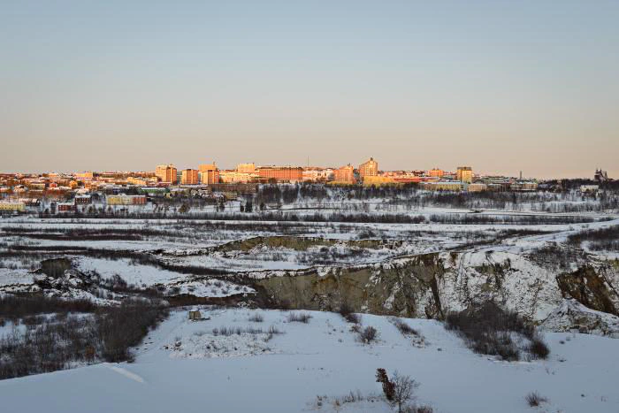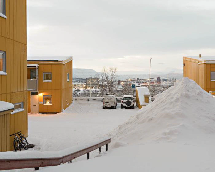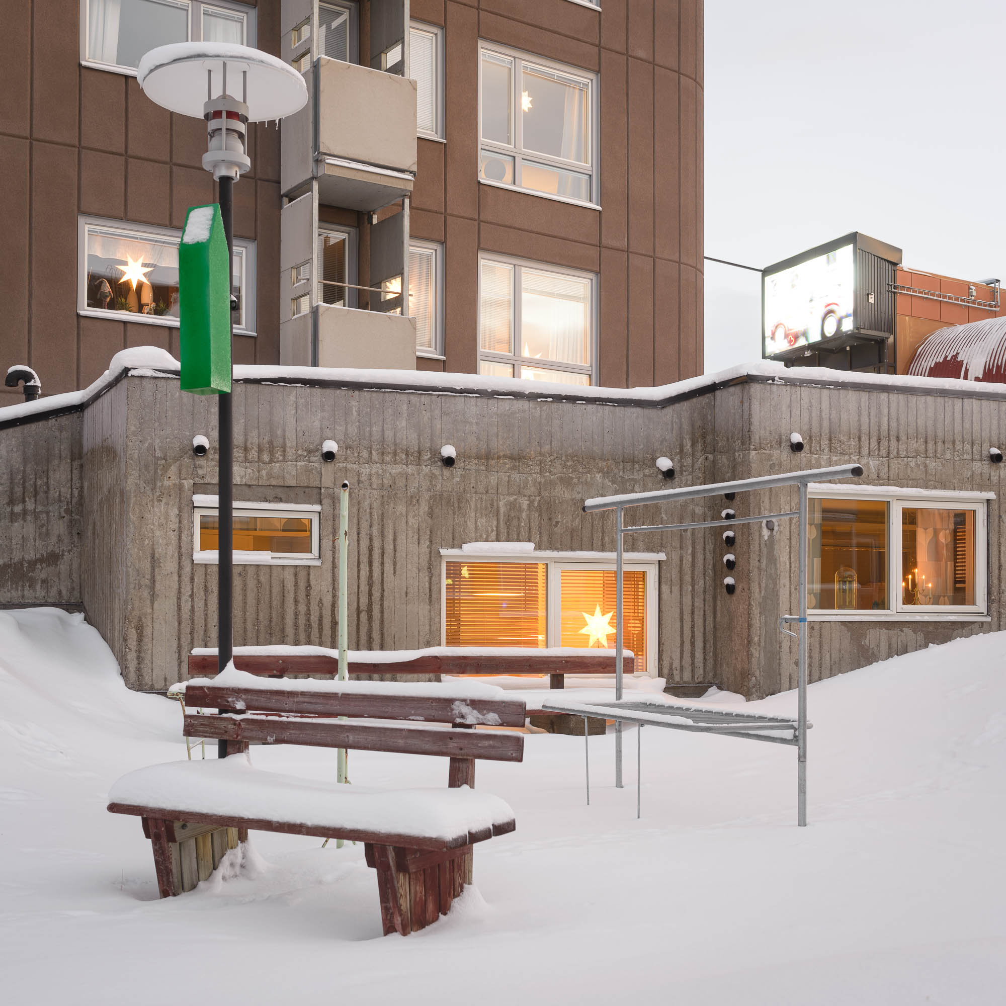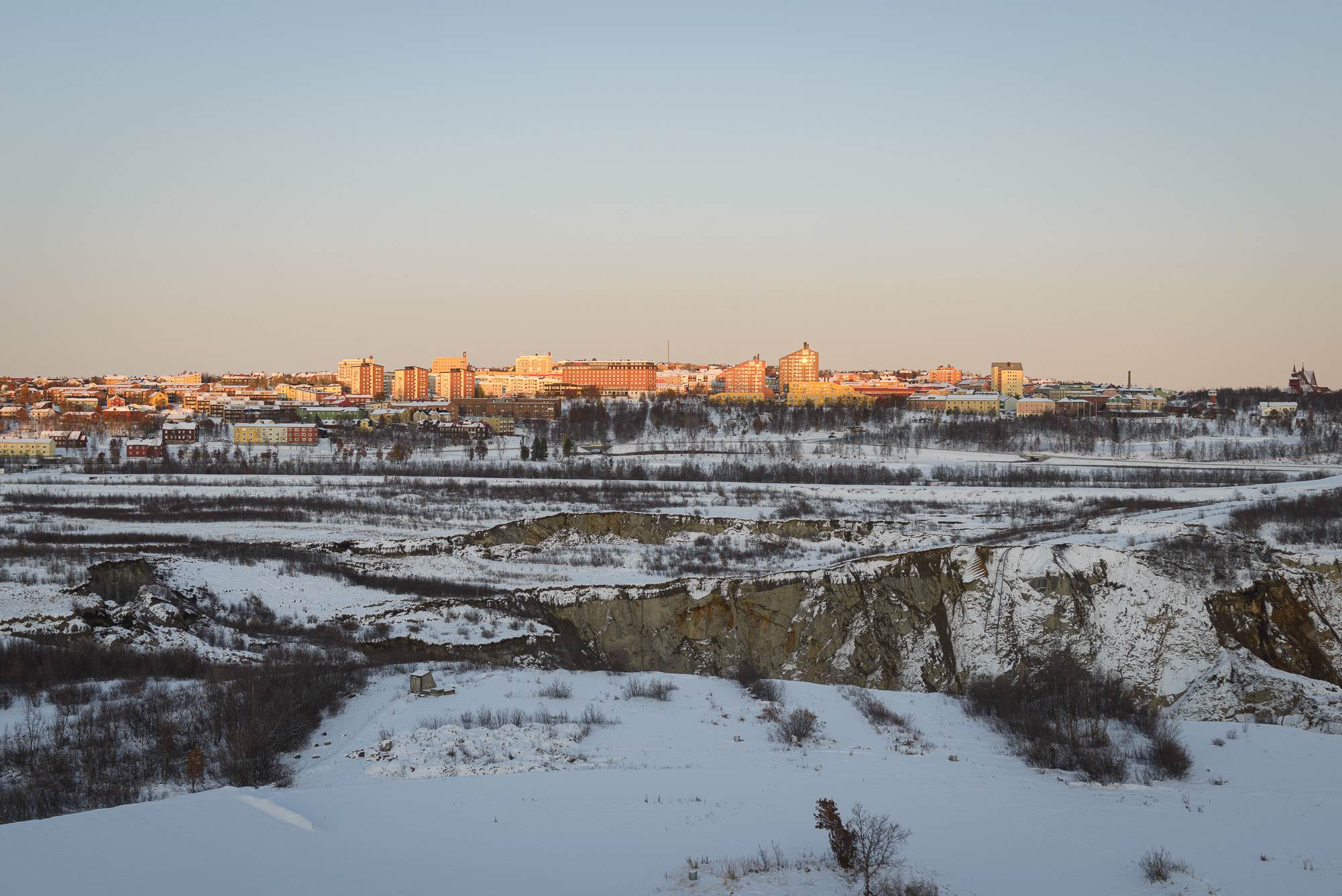 Slutligen en bild från innergården, ner mot gropen, förvaltningskontoret och området. Mot LKABs hjärta. Normalt sett arbetar jag i höghuset i fjärran, och gruvan ligger långt under oss.